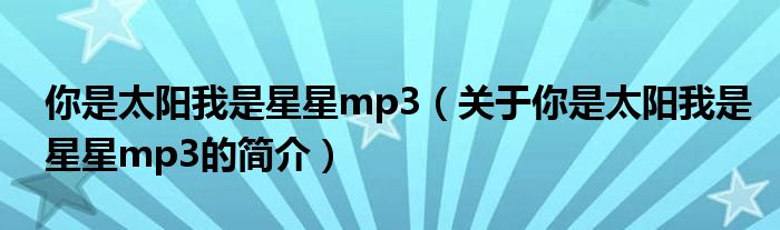 本文關于你是太陽我是星星mp3的簡介就講解完畢,希望對大家有所幫助。