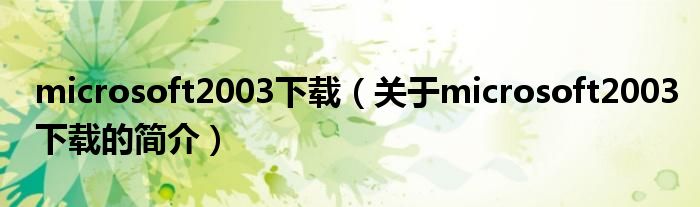 本文關于microsoft2003下載的簡介就講解完畢,希望對大家有所幫助。