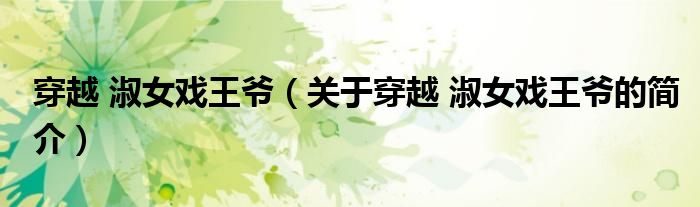 本文關于穿越 淑女戲王爺的簡介就講解完畢,希望對大家有所幫助。
