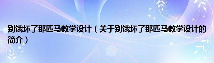 大家好,別餓壞了那匹馬教學設計,關于別餓壞了那匹馬教學設計的簡介很多人還不知道,現在讓我們一起來看看吧!