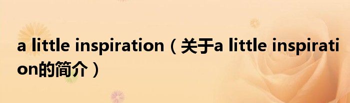 大家好,a little inspiration,關(guān)于a little inspiration的簡(jiǎn)介很多人還不知道,現(xiàn)在讓我們一起來看看吧!