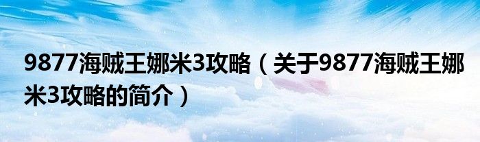 本文關于9877海賊王娜米3攻略的簡介就講解完畢,希望對大家有所幫助。