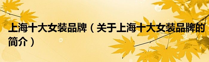 本文關于上海十大女裝品牌的簡介就講解完畢,希望對大家有所幫助。