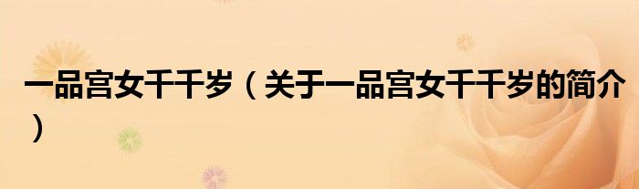 本文關于一品宮女千千歲的簡介就講解完畢,希望對大家有所幫助。
