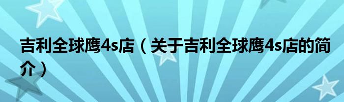 本文關于吉利全球鷹4s店的簡介就講解完畢,希望對大家有所幫助。