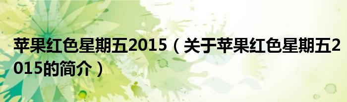 大家好,蘋果紅色星期五2015,關于蘋果紅色星期五2015的簡介很多人還不知道,現在讓我們一起來看看吧!