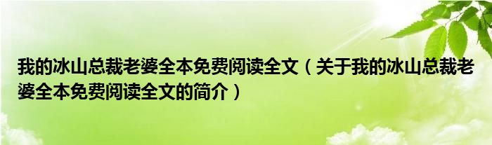 本文關于我的冰山總裁老婆全本免費閱讀全文的簡介就講解完畢,希望對大家有所幫助。