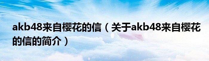 大家好,akb48來自櫻花的信,關于akb48來自櫻花的信的簡介很多人還不知道,現在讓我們一起來看看吧!