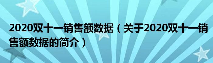 本文關于2020雙十一銷售額數據的簡介就講解完畢,希望對大家有所幫助。