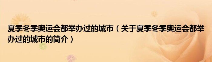 本文關(guān)于夏季冬季奧運(yùn)會都舉辦過的城市的簡介就講解完畢,希望對大家有所幫助。