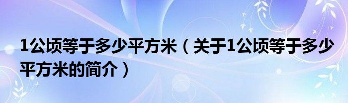 本文關(guān)于1公頃等于多少平方米的簡介就講解完畢,希望對大家有所幫助。