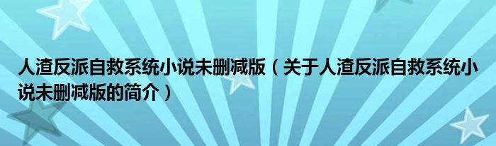 本文關(guān)于人渣反派自救系統(tǒng)小說未刪減版的簡介就講解完畢,希望對大家有所幫助。