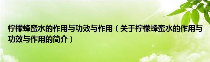 本文關于檸檬蜂蜜水的作用與功效與作用的簡介就講解完畢,希望對大家有所幫助。