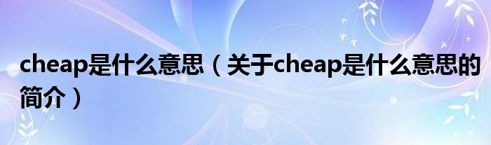 本文關于cheap是什么意思的簡介就講解完畢,希望對大家有所幫助。