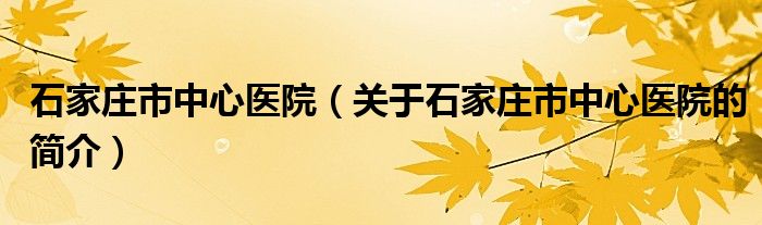 本文關于石家莊市中心醫院的簡介就講解完畢,希望對大家有所幫助。