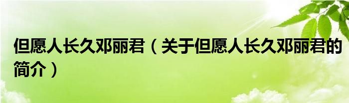 本文關于但愿人長久鄧麗君的簡介就講解完畢,希望對大家有所幫助。