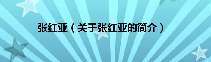大家好,張紅亞,關于張紅亞的簡介很多人還不知道,現在讓我們一起來看看吧!