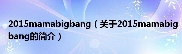 本文關于2015mamabigbang的簡介就講解完畢,希望對大家有所幫助。