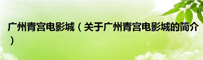 本文關(guān)于廣州青宮電影城的簡介就講解完畢,希望對大家有所幫助。