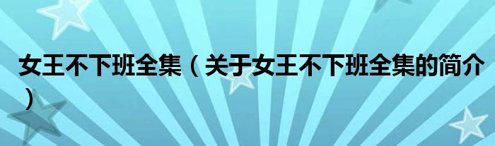 本文關于女王不下班全集的簡介就講解完畢,希望對大家有所幫助。