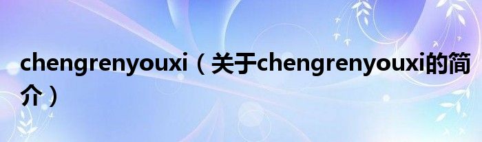 大家好,chengrenyouxi,關于chengrenyouxi的簡介很多人還不知道,現在讓我們一起來看看吧!