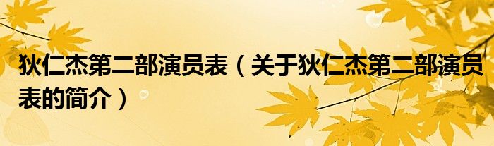 本文關于狄仁杰第二部演員表的簡介就講解完畢,希望對大家有所幫助。