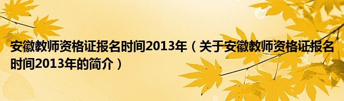 本文關(guān)于安徽教師資格證報名時間2013年的簡介就講解完畢,希望對大家有所幫助。