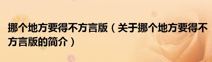 本文關(guān)于挪個(gè)地方要得不方言版的簡(jiǎn)介就講解完畢,希望對(duì)大家有所幫助。