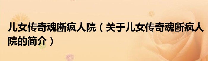 本文關于兒女傳奇魂斷瘋人院的簡介就講解完畢,希望對大家有所幫助。