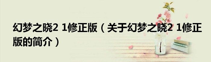 大家好,幻夢之曉2 1修正版,關(guān)于幻夢之曉2 1修正版的簡介很多人還不知道,現(xiàn)在讓我們一起來看看吧!