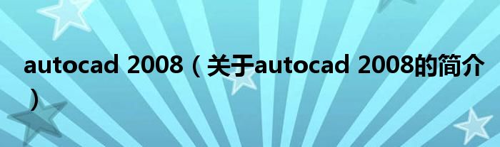 大家好,autocad 2008,關于autocad 2008的簡介很多人還不知道,現(xiàn)在讓我們一起來看看吧!