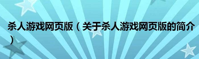 本文關于殺人游戲網頁版的簡介就講解完畢,希望對大家有所幫助。