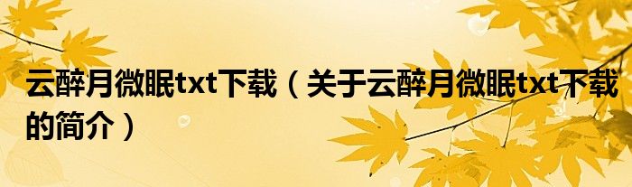 大家好,云醉月微眠txt下載,關于云醉月微眠txt下載的簡介很多人還不知道,現在讓我們一起來看看吧!