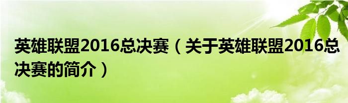 本文關于英雄聯盟2016總決賽的簡介就講解完畢,希望對大家有所幫助。