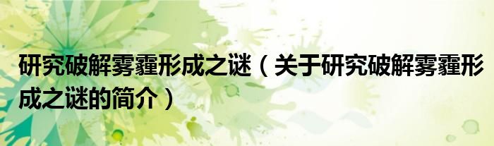 本文關(guān)于研究破解霧霾形成之謎的簡(jiǎn)介就講解完畢,希望對(duì)大家有所幫助。