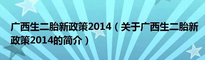 本文關于廣西生二胎新政策2014的簡介就講解完畢,希望對大家有所幫助。