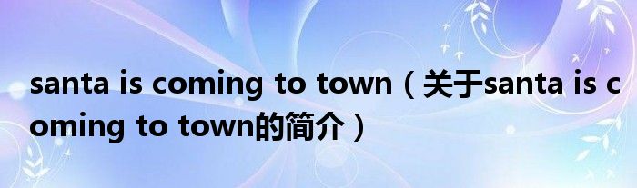 大家好,santa is coming to town,關于santa is coming to town的簡介很多人還不知道,現在讓我們一起來看看吧!