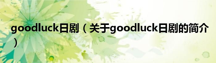 本文關于goodluck日劇的簡介就講解完畢,希望對大家有所幫助。