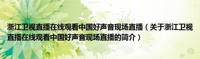 本文關于浙江衛視直播在線觀看中國好聲音現場直播的簡介就講解完畢,希望對大家有所幫助。