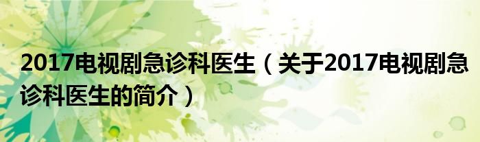 本文關于2017電視劇急診科醫生的簡介就講解完畢,希望對大家有所幫助。