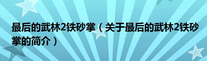 本文關于最后的武林2鐵砂掌的簡介就講解完畢,希望對大家有所幫助。