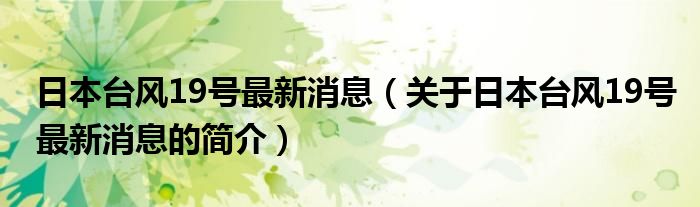 本文關于日本臺風19號最新消息的簡介就講解完畢,希望對大家有所幫助。