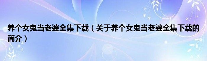 本文關(guān)于養(yǎng)個女鬼當老婆全集下載的簡介就講解完畢,希望對大家有所幫助。