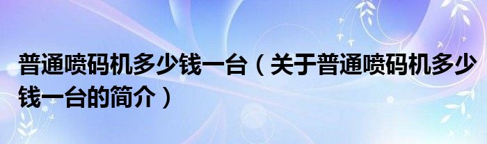 本文關于普通噴碼機多少錢一臺的簡介就講解完畢,希望對大家有所幫助。