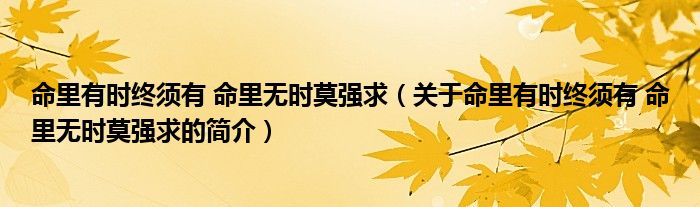 本文關(guān)于命里有時終須有 命里無時莫強(qiáng)求的簡介就講解完畢,希望對大家有所幫助。