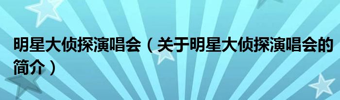 本文關于明星大偵探演唱會的簡介就講解完畢,希望對大家有所幫助。