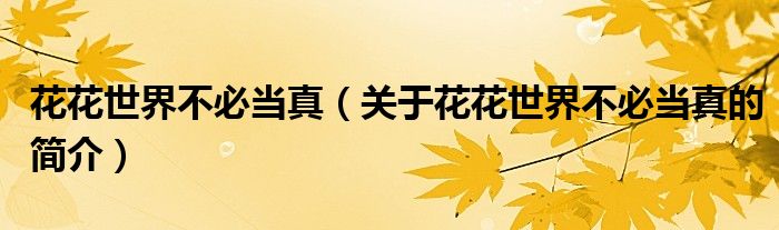 本文關于花花世界不必當真的簡介就講解完畢,希望對大家有所幫助。
