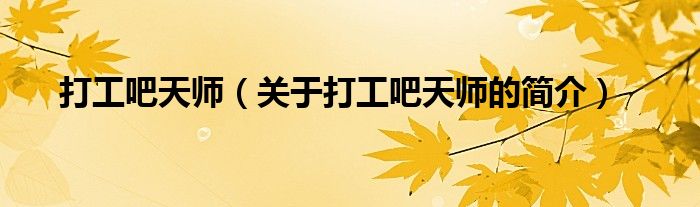 大家好,打工吧天師,關于打工吧天師的簡介很多人還不知道,現在讓我們一起來看看吧!