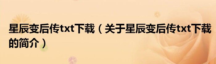 大家好,星辰變后傳txt下載,關(guān)于星辰變后傳txt下載的簡介很多人還不知道,現(xiàn)在讓我們一起來看看吧!