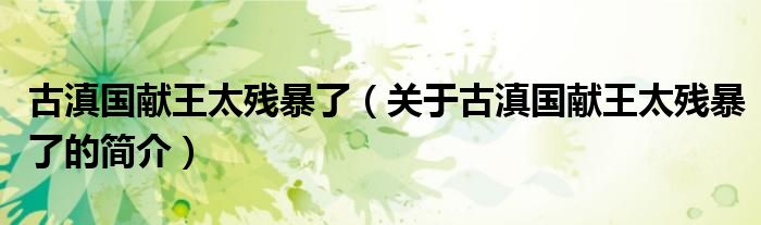 大家好,古滇國獻王太殘暴了,關于古滇國獻王太殘暴了的簡介很多人還不知道,現在讓我們一起來看看吧!